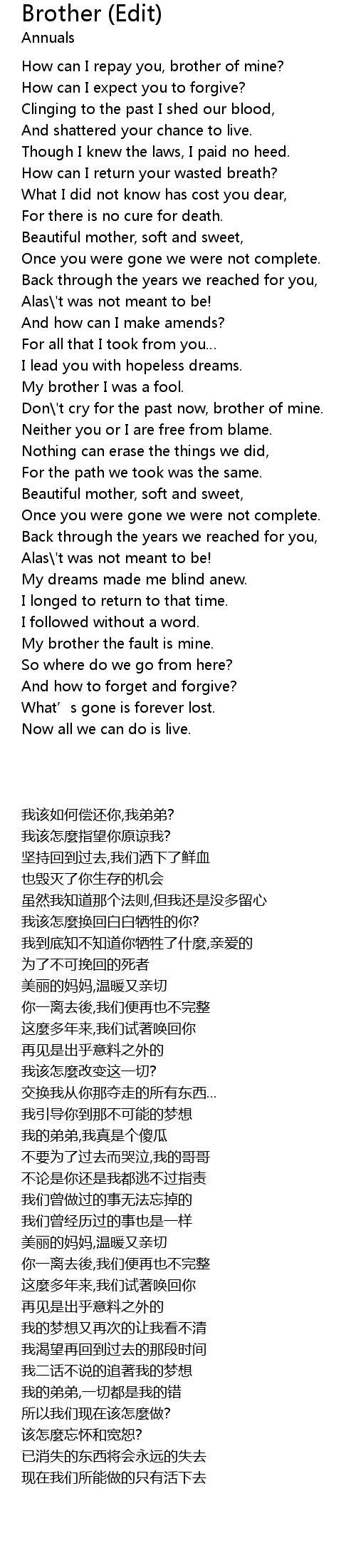 | [02:49.790] | My brother the fault is mine. |