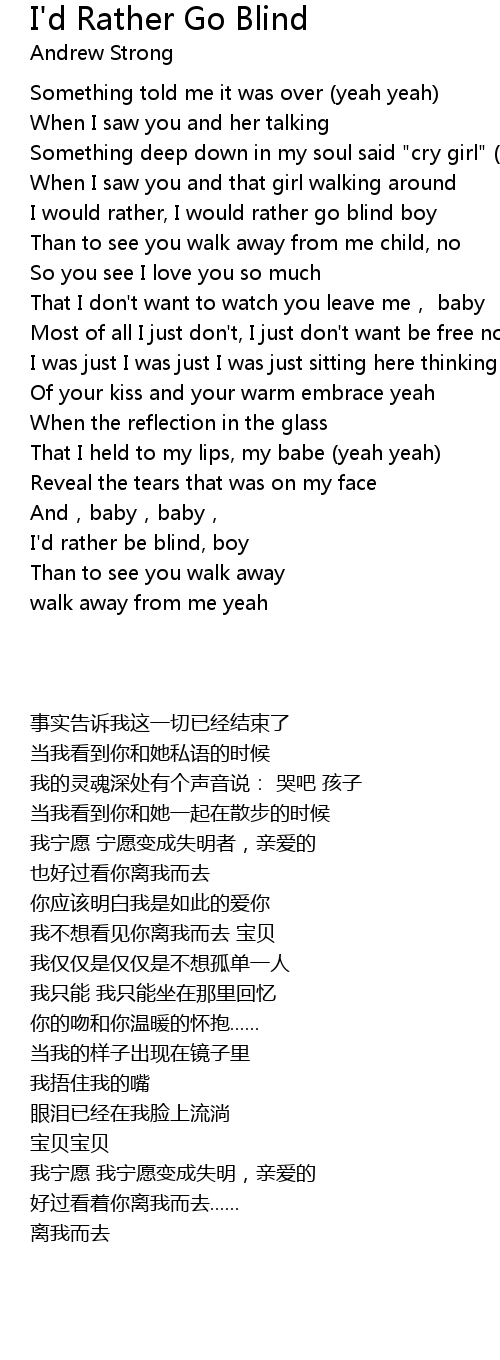 | [00:53.950] | I would rather, I would rather go blind boy |
