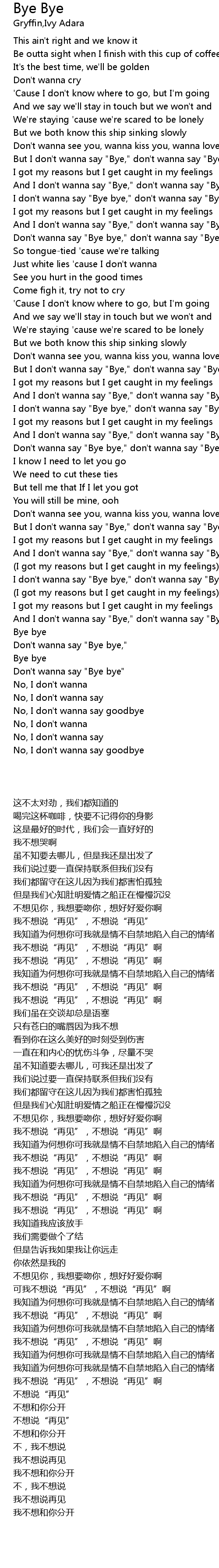 | [01:46.47] | And I don't wanna say "Bye," don't wanna say "Bye bye" |