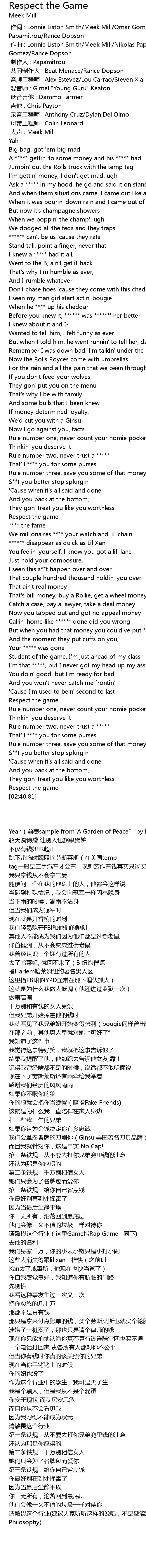 | [02:39.55] | Respect the game |