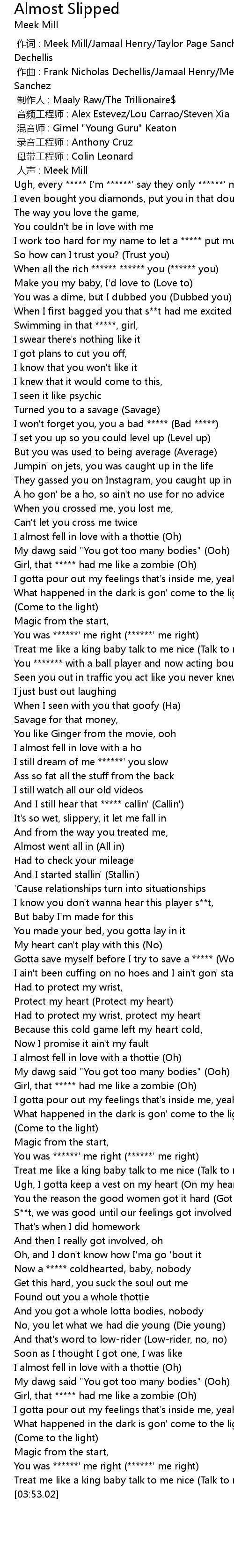 | [00:00.000] | zuo ci : Meek Mill Jamaal Henry Taylor Page Sanchez Frank Nicholas Dechellis |