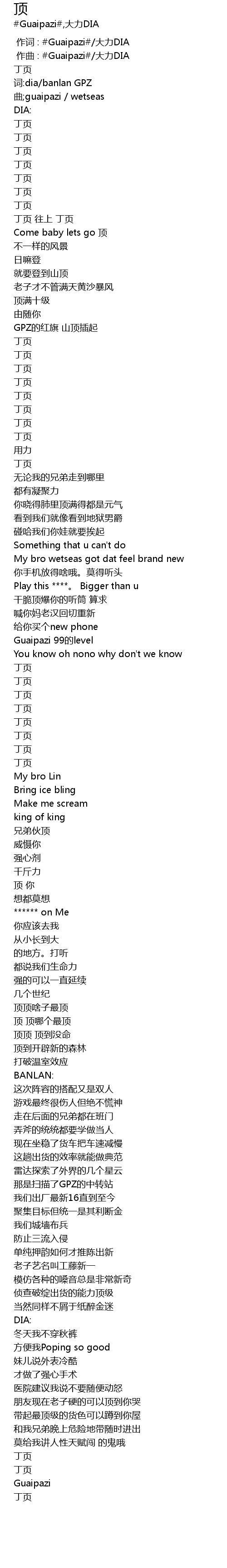 | [00:00.000] | 作词 : #Guaipazi#/大力DIA |