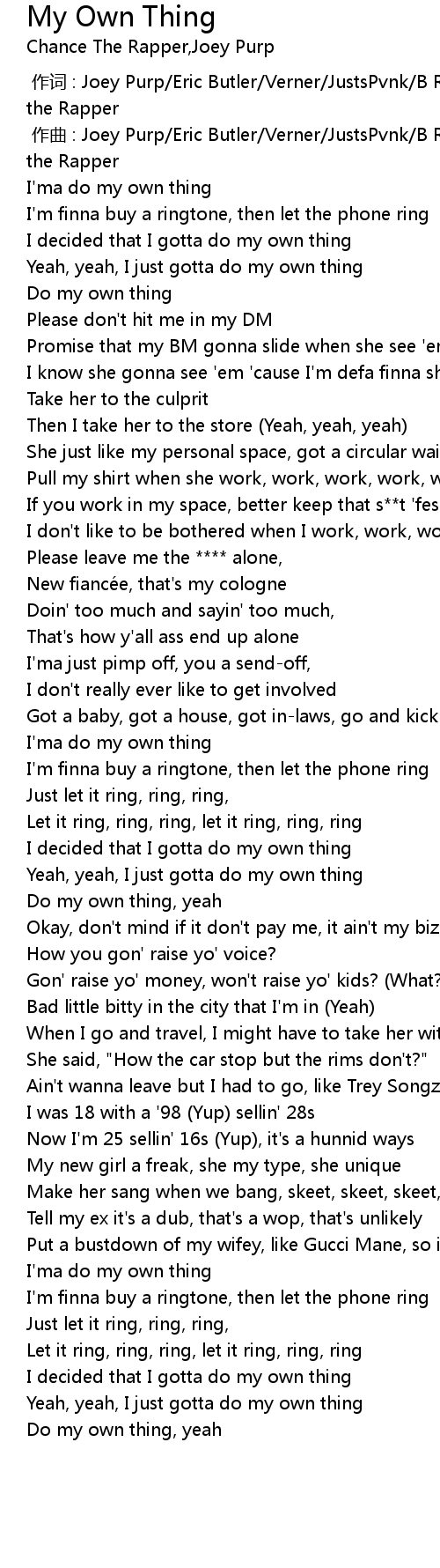 | [00:32.52] | Yeah, yeah, I just gotta do my own thing |