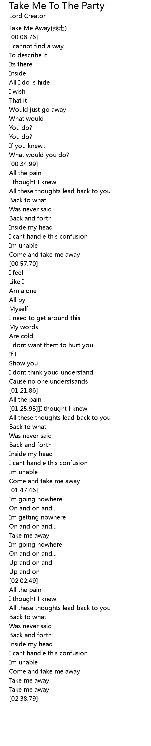 | [02:32.96] | Take me away |