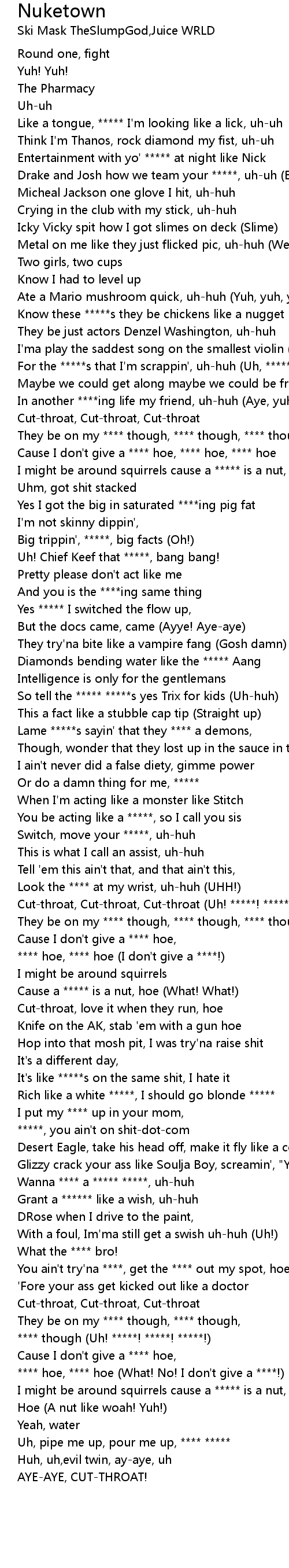 Cut-throat, Cut-throat, Cut-throat (Uh! *****! *****!) |
