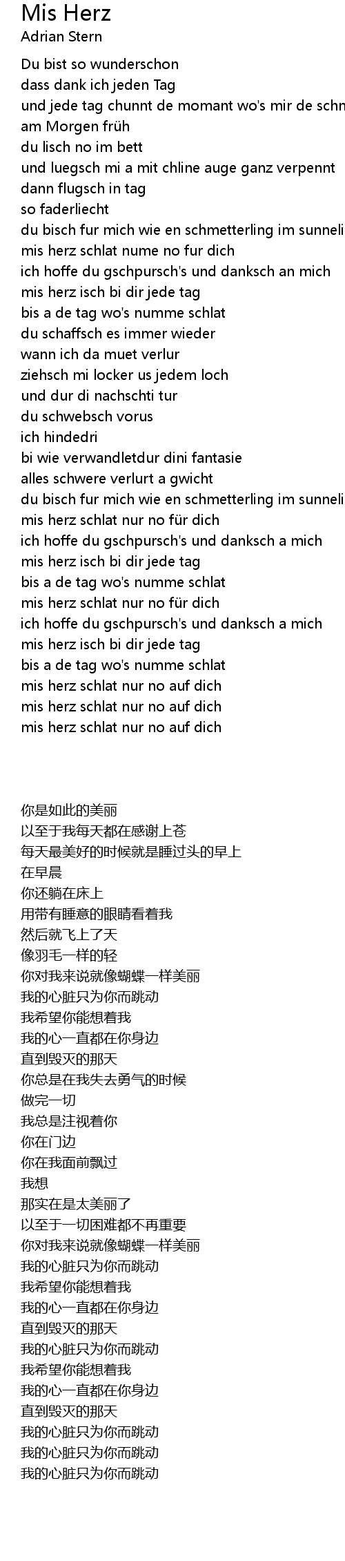 | [00:38.62] | mis herz schlat nume no fur dich |