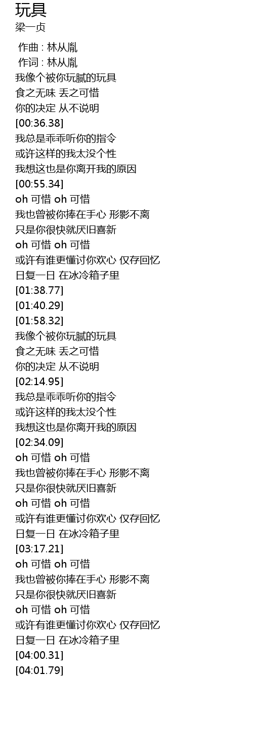 | [01:59.32] | 我像个被你玩腻的玩具 |