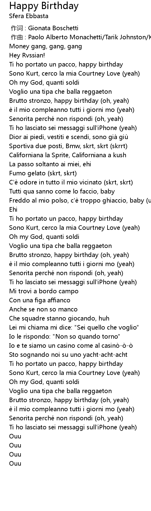 | [02:21.24] | Brutto stronzo, happy birthday (oh, yeah) |