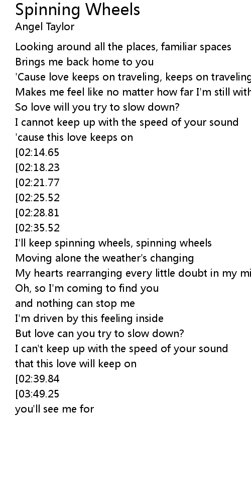 I'll keep spinning wheels, spinning wheels |