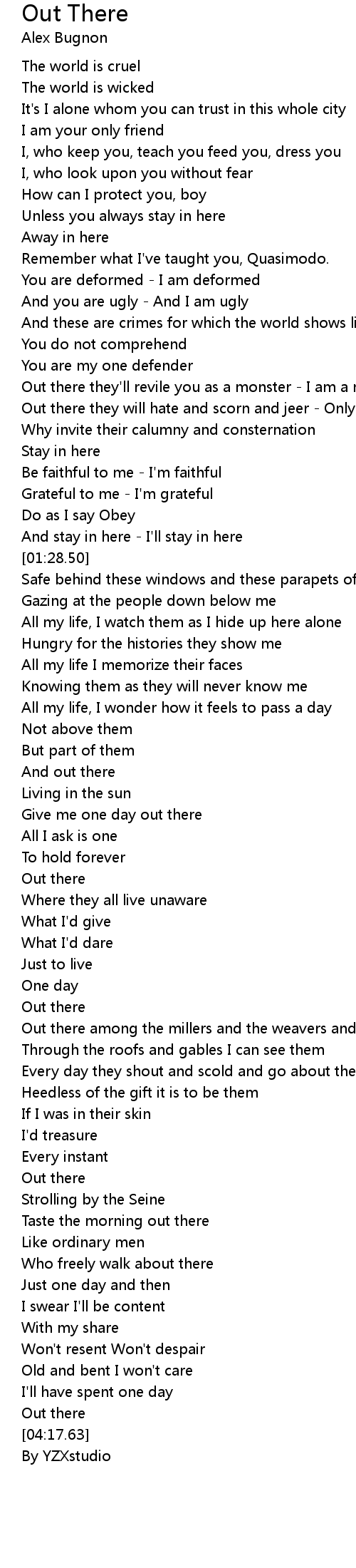 [01:01.50] Out there they will hate and scorn and jeer - Only a monster