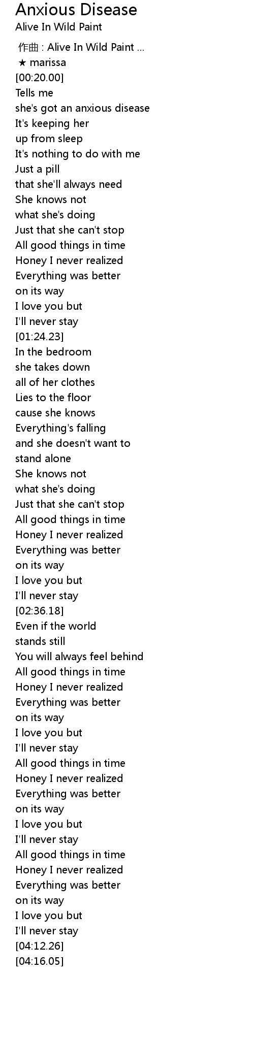 | [00:27.14] | she's got an anxious disease |
