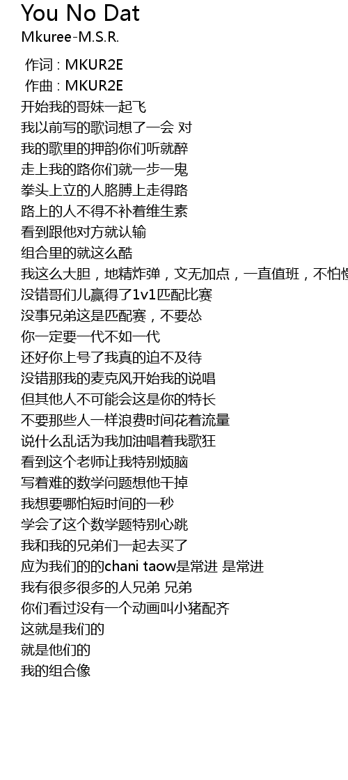 | [00:44.280] | mei shi xiong di zhe shi pi pei sai, bu yao song |