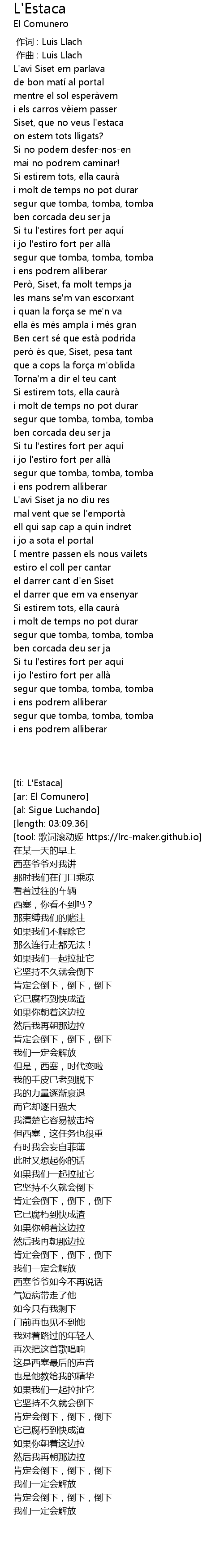 | [00:01.000] | 作曲 : Luis Llach |