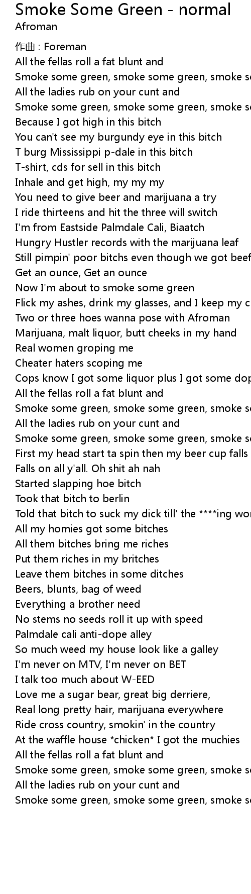 | Smoke some green, smoke some green, smoke some (green) x2 | |