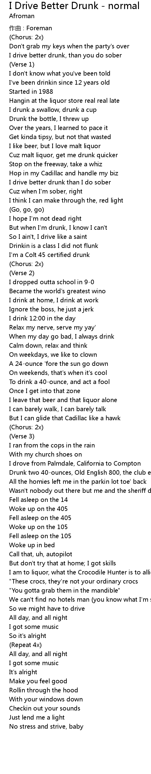 | Song | I Drive Better Drunk - normal |