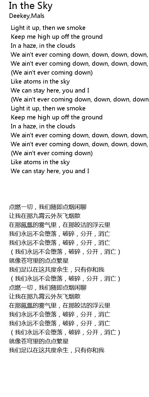 | [01:07.657] | (We ain't ever coming down, down, down, down, down) |