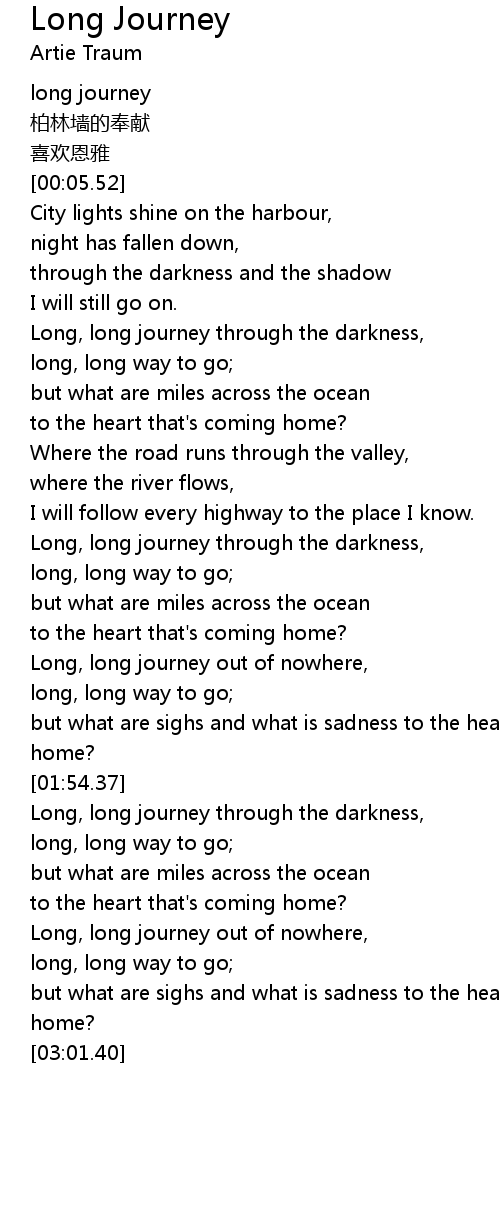 | [00:01.97] | long journey |