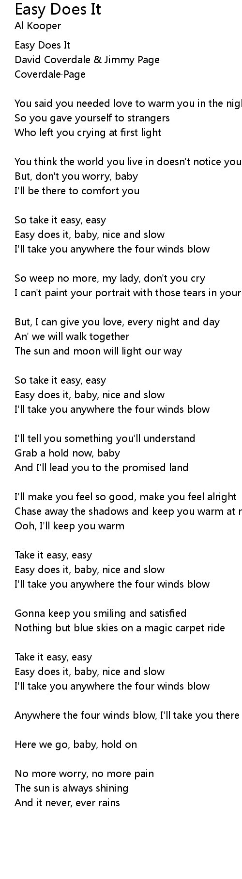 | So take it easy, easy | |