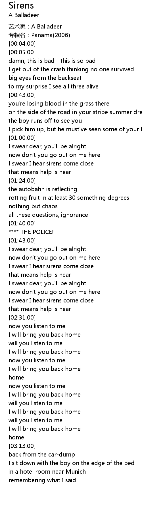 | [01:52.00] | I swear I hear sirens come close |