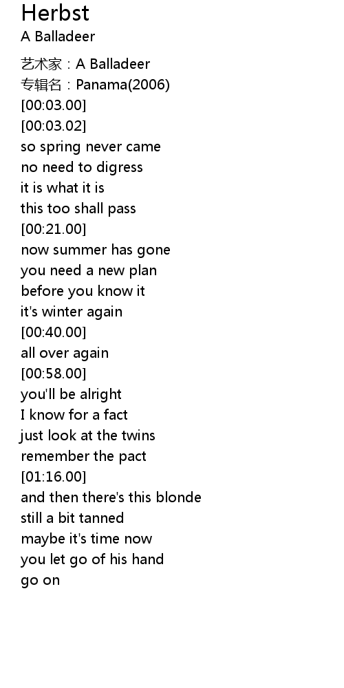 | [00:02.00] | 专辑名:Panama(2006) |