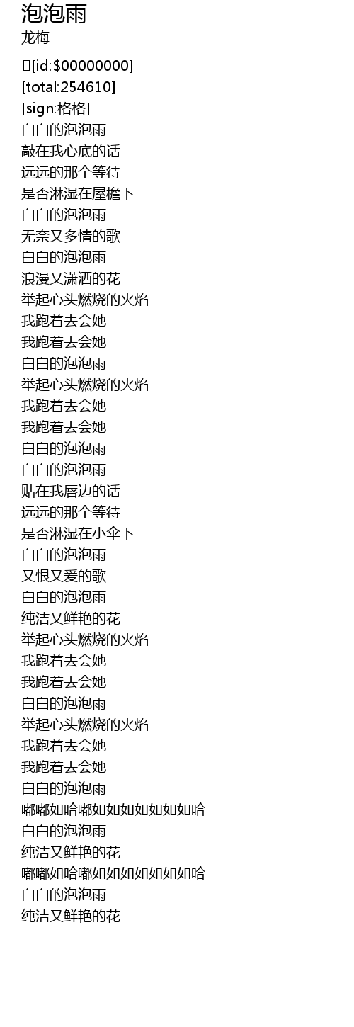 | [02:58.228] | 白白的泡泡雨 |