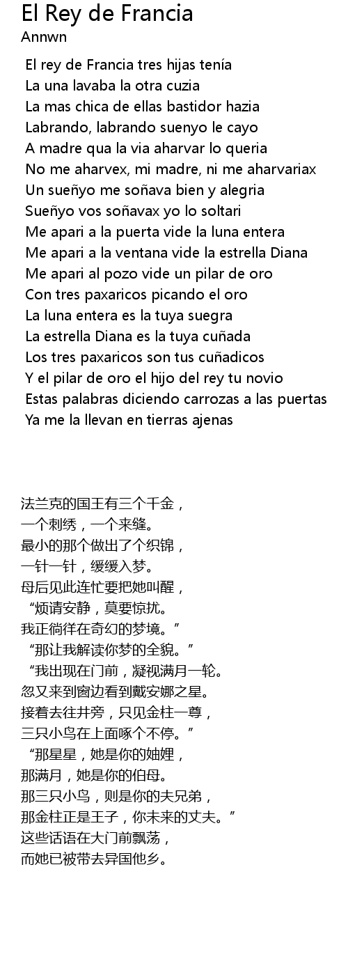 | Song | El Rey de Francia |