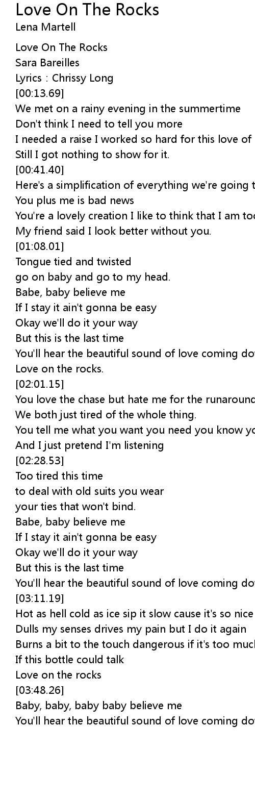 | [00:15.27] | We met on a rainy evening in the summertime |