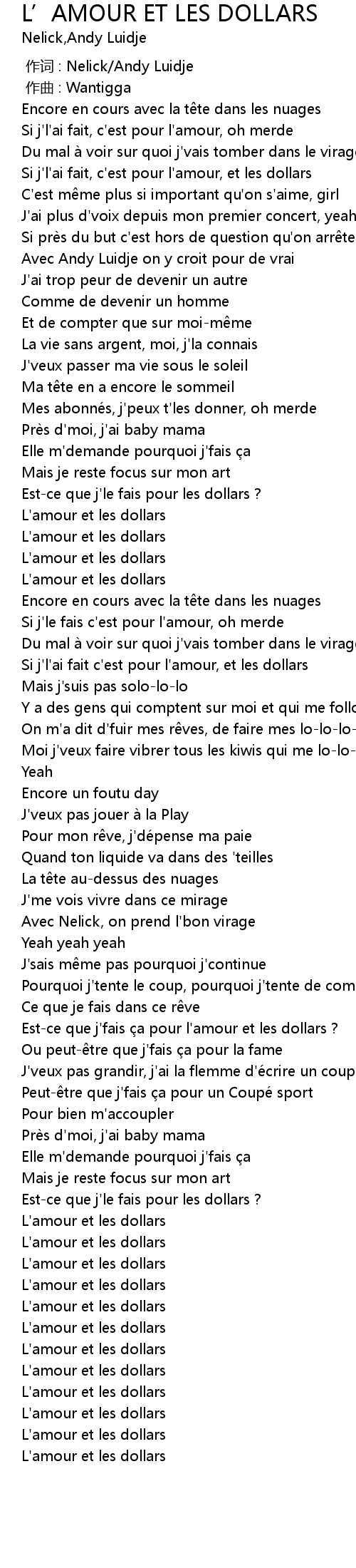 | [01:13.24] | L'amour et les dollars |
