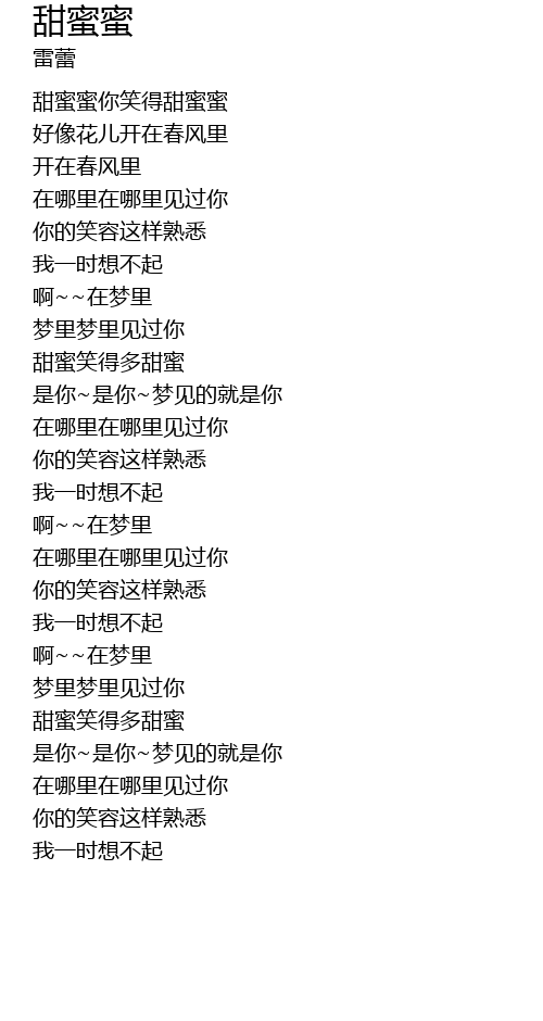 | [00:15.56] | 甜蜜蜜你笑得甜蜜蜜 |
