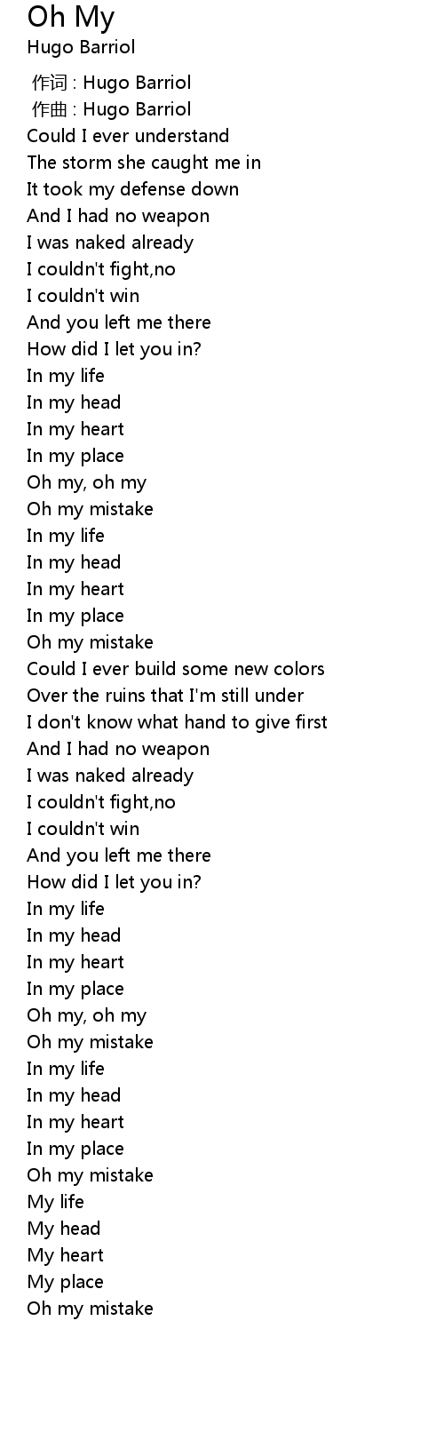 | [00:00.000] | zuò cí : Hugo Barriol |