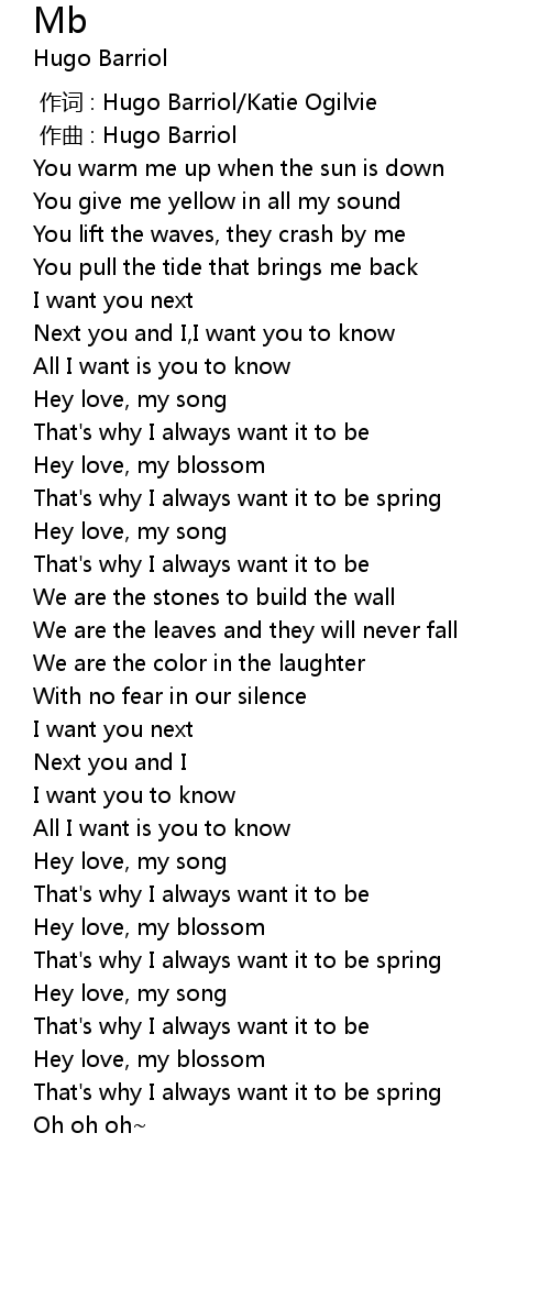 | [00:00.000] | 作词 : Hugo Barriol/Katie Ogilvie |