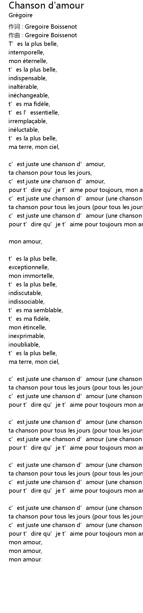 | c' est juste une chanson d' amour une chanson d' amour | |