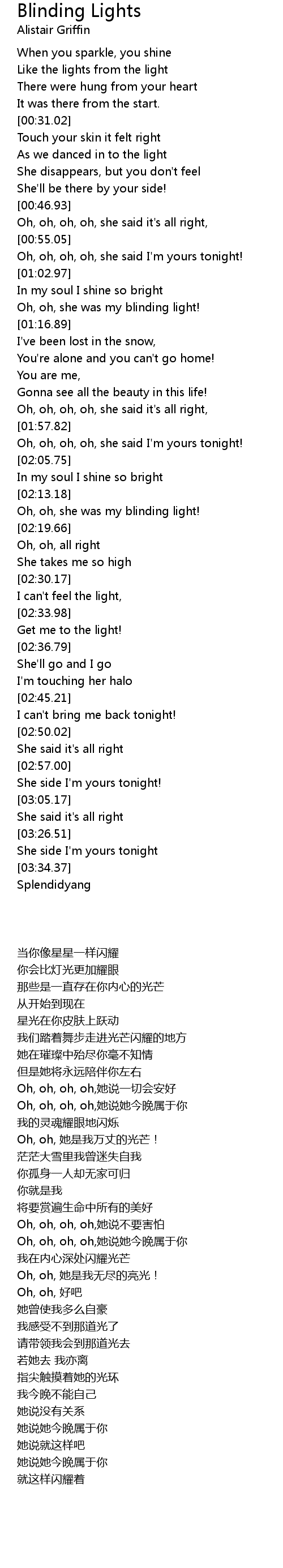 Oh, oh, she was my blinding light! |