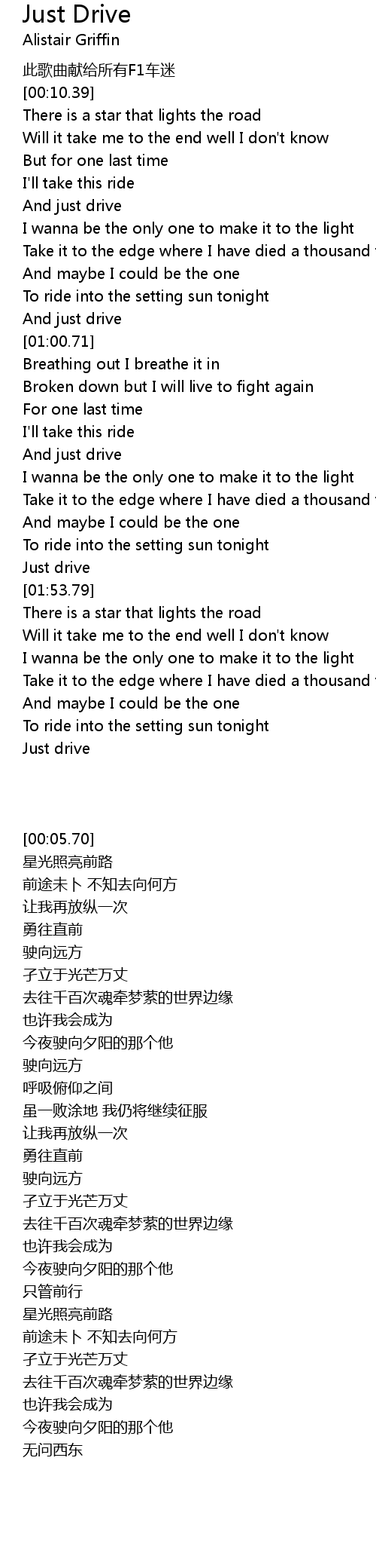 | [00:05.70] | 此歌曲献给所有F1车迷 |