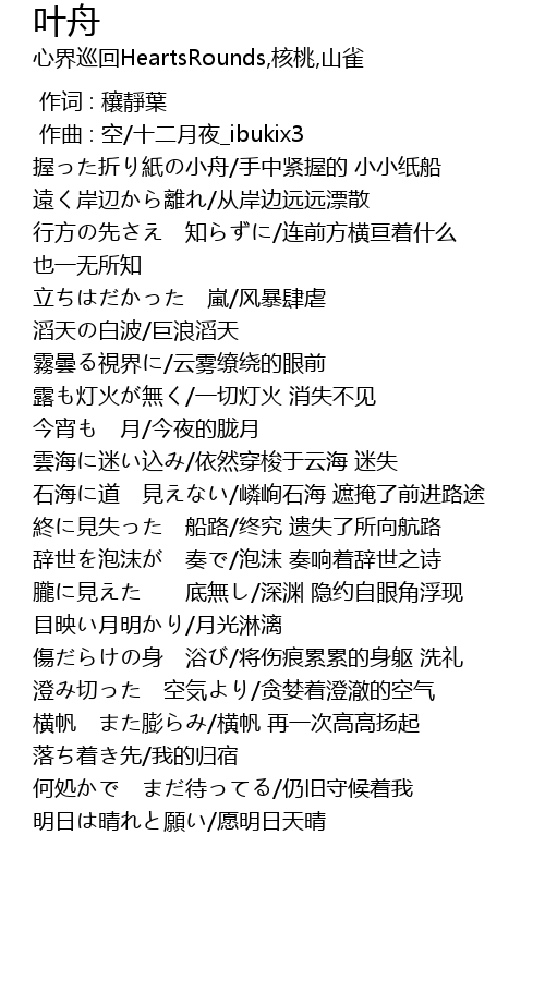 | [00:38.202] | 握った折り紙の小舟/手中紧握的 小小纸船 |