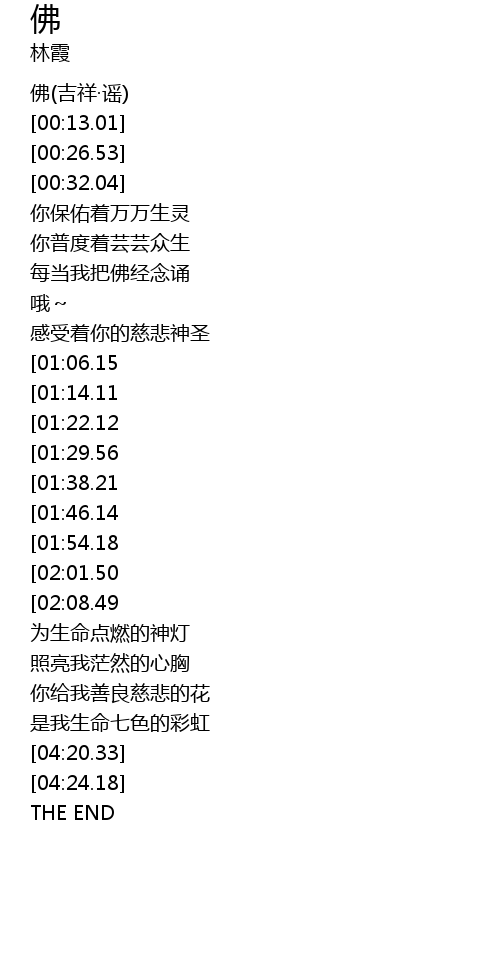 | [00:00.00] | 佛(吉祥·谣) |