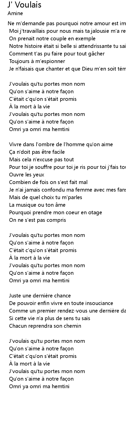 | Moi j' travaillais pour nous mais ta jalousie m' a rendu fou | |