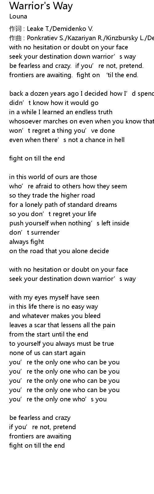 | Song | Warrior's Way |