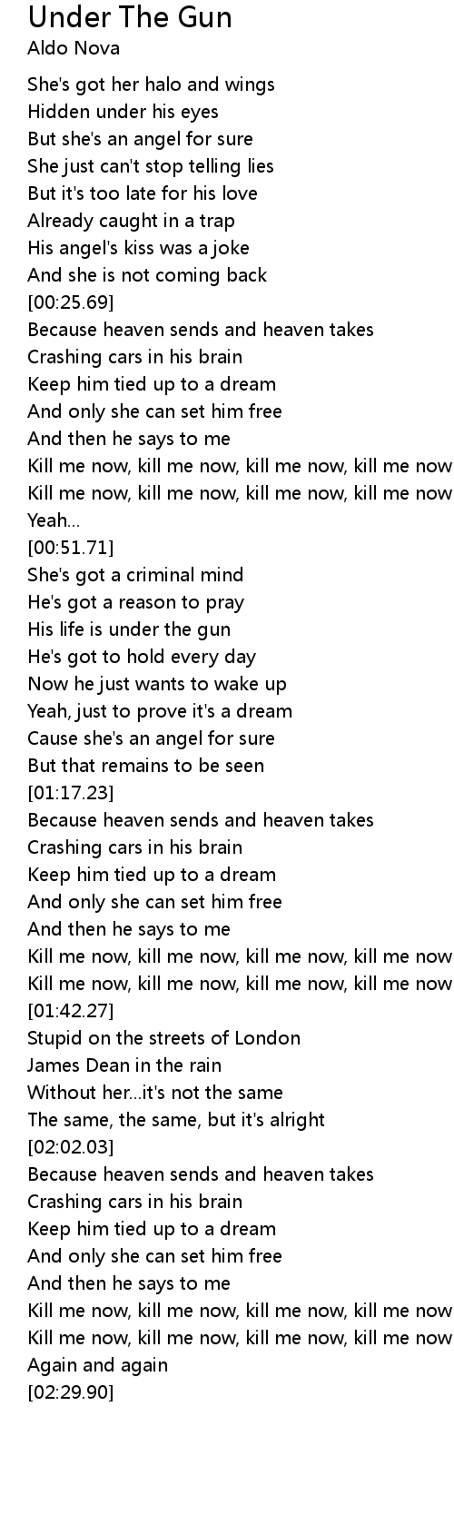 | [00:58.32] | His life is under the gun |