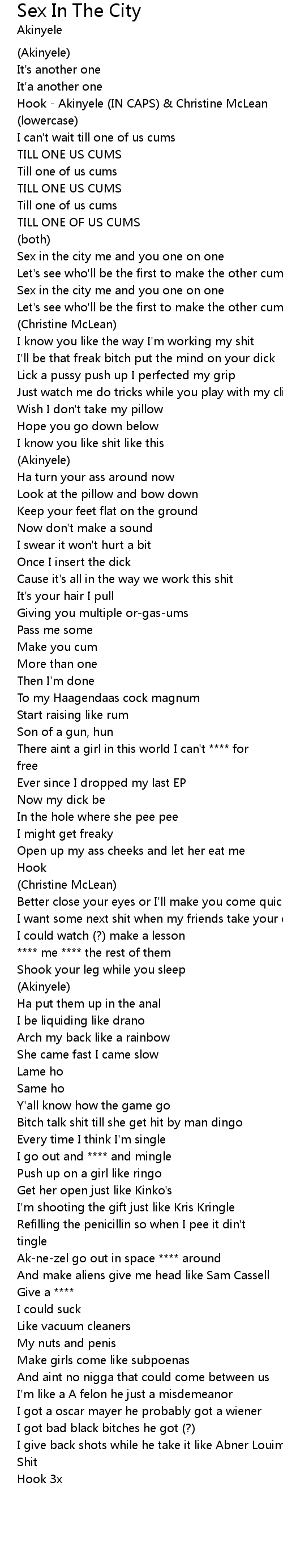 | Hook - Akinyele (IN CAPS) & Christine McLean | |