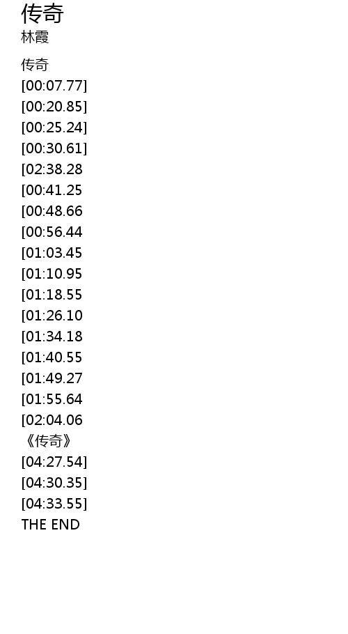 | [04:21.55] | 《传奇》 |