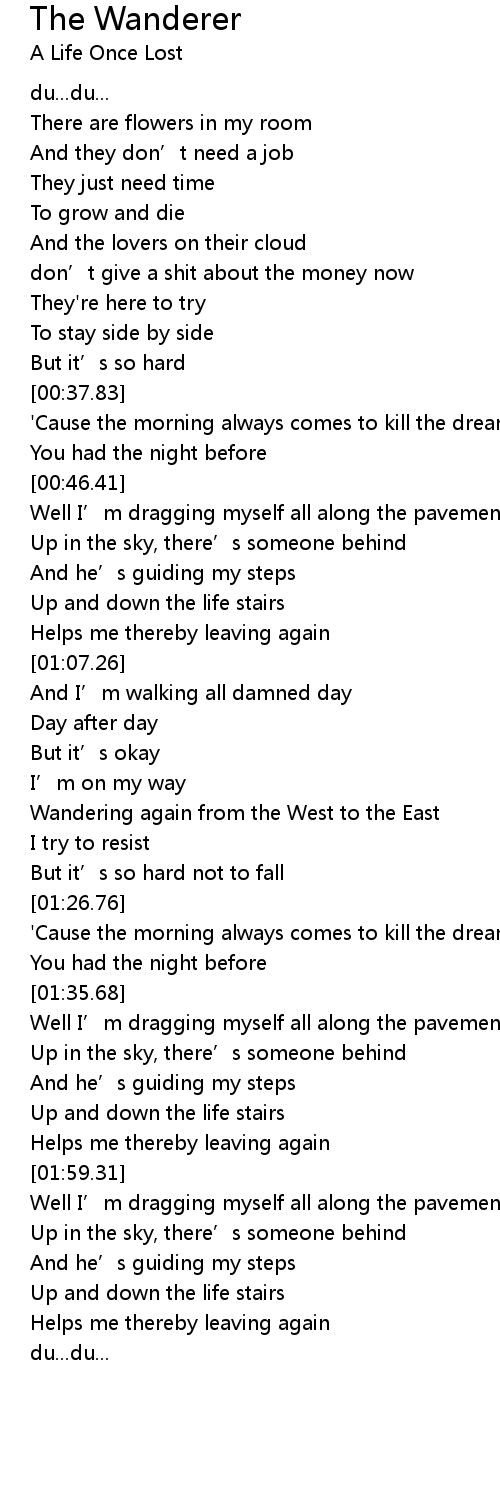 | [00:38.25] | ' Cause the morning always comes to kill the dream |