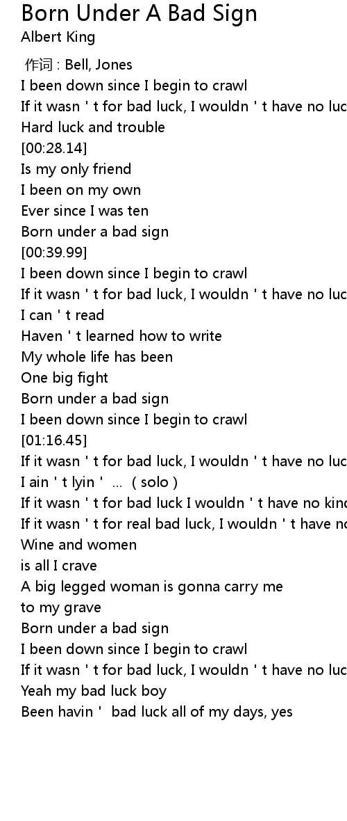 | [02:06.42] | Born under a bad sign |