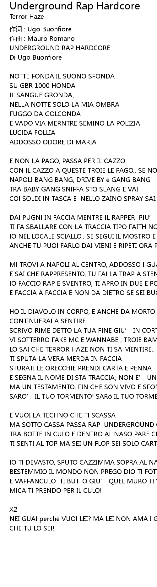 | MA SOTTO CASSA PASSA RAP UNDERGROUND CHE LA TUA MERDA SCHIACCIA | |