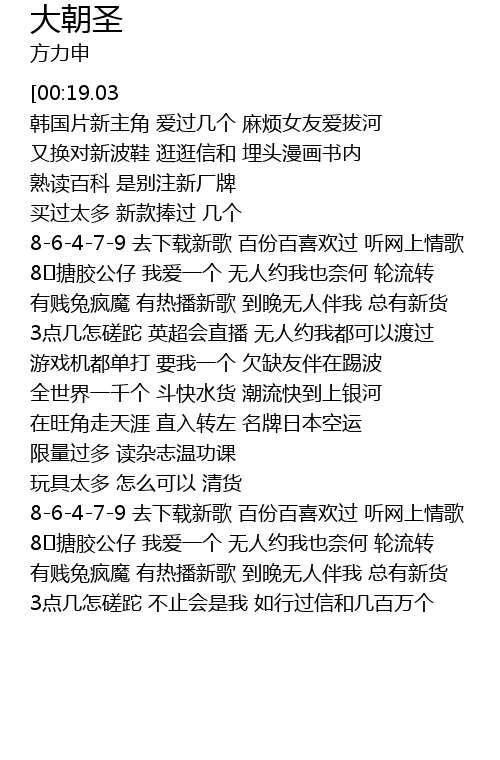 | [00:57.01] | 8�搪胶公仔 我爱一个 无人约我也奈何 轮流转 |