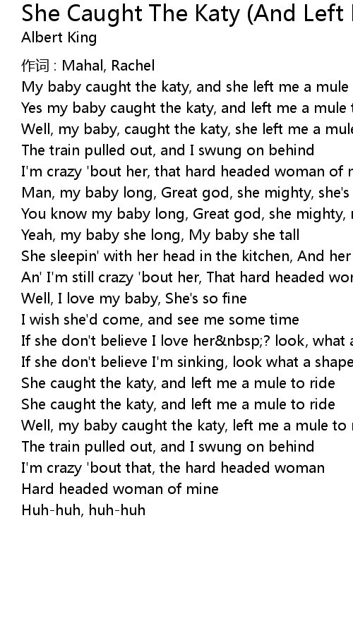 | Yes my baby caught the katy, and left me a mule to ride | |