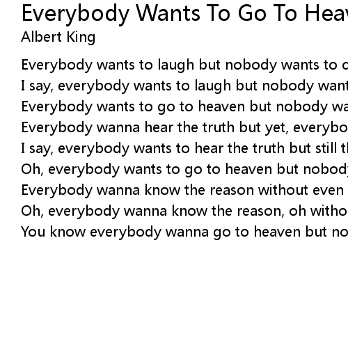 You know everybody wanna go to heaven but nobody wants to die |