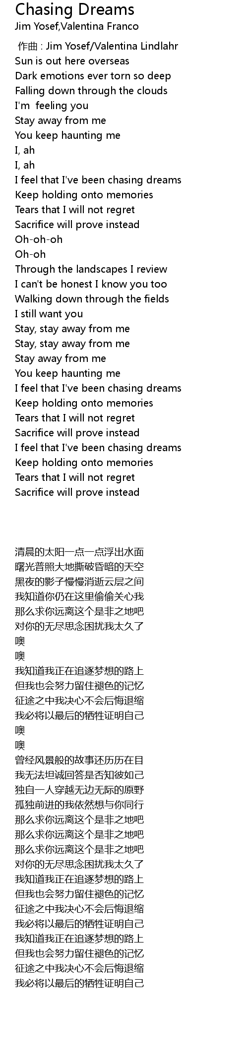 | [03:01.92] | I feel that I' ve been chasing dreams |