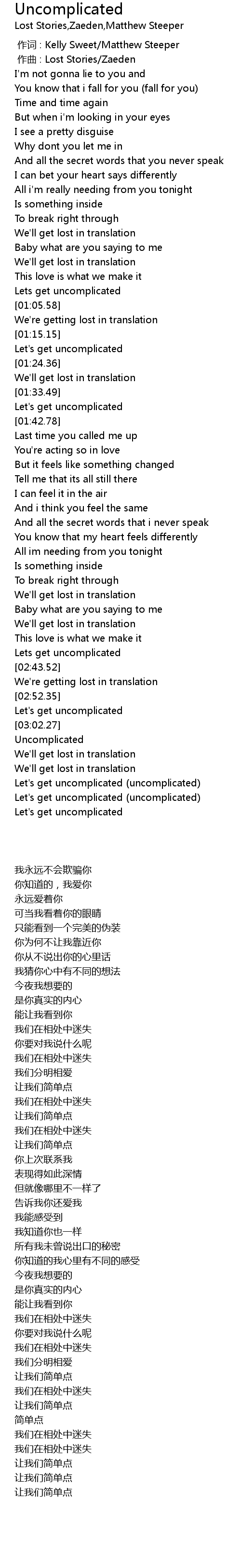 | [03:11.11] | Let' s get uncomplicated uncomplicated |