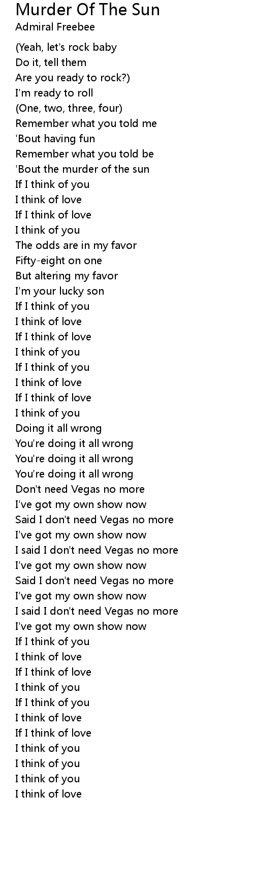 'Bout the murder of the sun |
